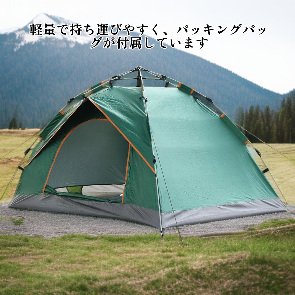 アウトドアキャンプ用防水テント 2人用 三つ窓 自動設営