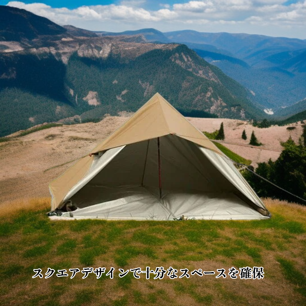 ● 四角形デザインで広いスペースを確保。家族や友人とのアウトドアイベントでも、ゆったりと過ごせる安心のサイズ感です。
