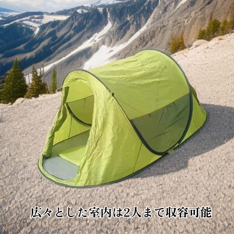 ● 2人用の広々とした室内空間が確保されており、キャンプやレジャーで快適な休息を実現します。